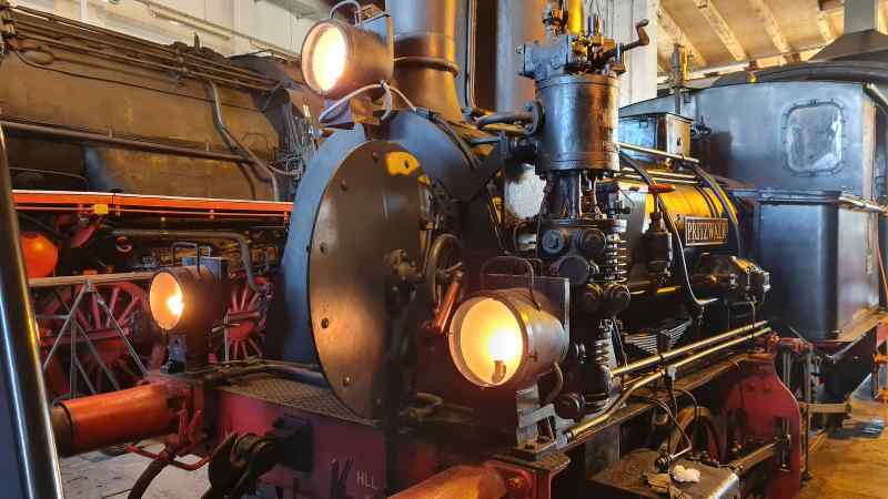 The cab of steam locomotive 50 3624 was prepared for visitors. For example, all the controls on the cab have been marked and the lighting has been added. In addition, a friendly mannequin in a fireman's uniform invites visitors to enter the cab.