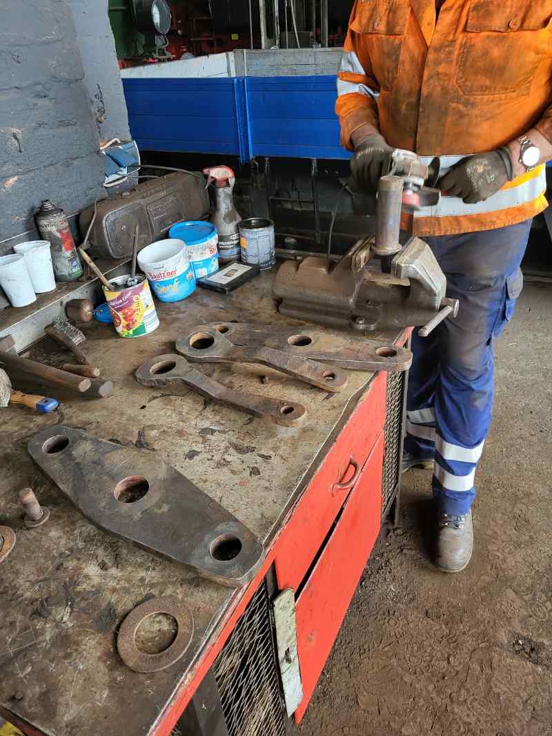 The next project of some club members was the PwG 88 baggage car. Here the floor covering in the entrance area was removed to replace the wooden boards underneath with new ones. In addition, the brake was dismantled in order to clean and inspect the parts. The wagon should be ready for use again soon. Here are pictures of the wagon and the parts of the vehicle brake.