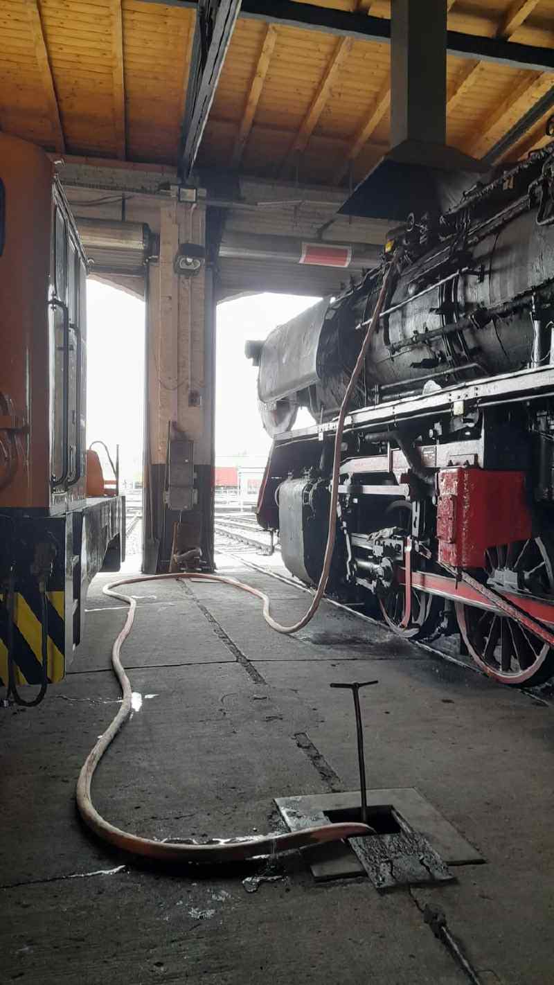 This weekend, the locomotive was prepared for use. The water in the boiler was brought up to the necessary level for firing up.