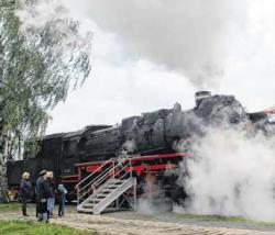Natürlich gab es Mitfahrgelegenheiten nicht nur im modernen Triebwagen der Potsdamer Eisenbahngesellschaft, sondern auch die alten Dampfrösser schnauften am Wochenende auf dem Gelände des Lokschuppens.