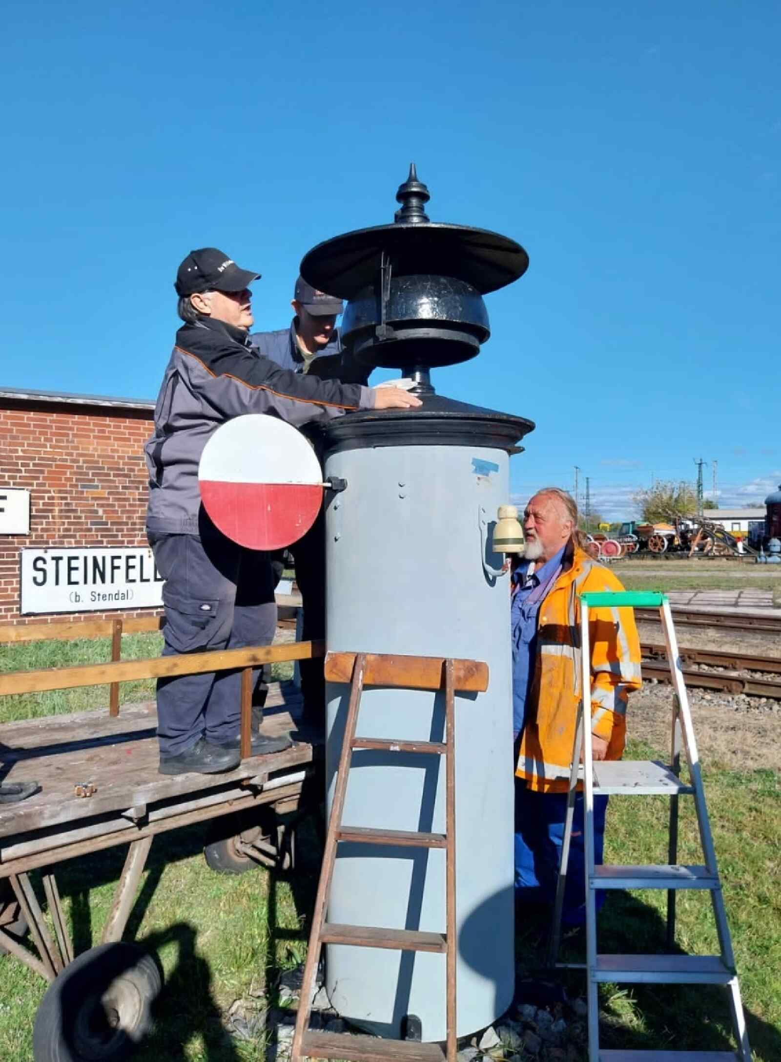 Auch die Kollegen, die sich um unsere historische Läutewerksammlung kümmern, waren wieder fleißig. Inzwischen konnten sie eine weitere Anlage aufstellen, nachdem sie entrostet und neu lackiert worden war. Tolle Arbeit!